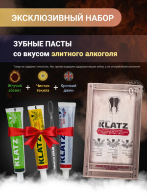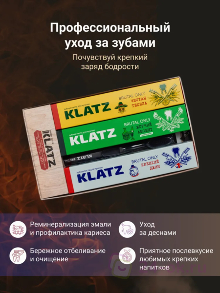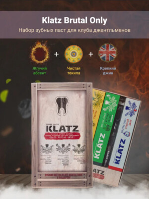 Набор Зубная паста Klatz BRUTAL ONLY Чистая текила 75мл+Крепкий джин 75мл+Жгучий абсент 75мл + зубная щетка BRUTAL ONLY жесткая в подарок