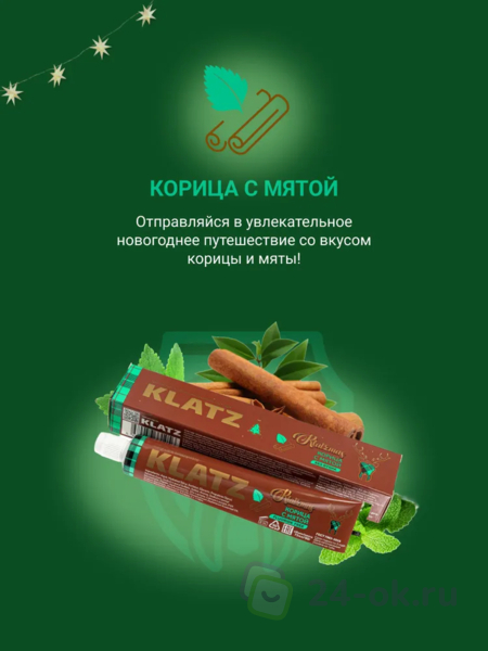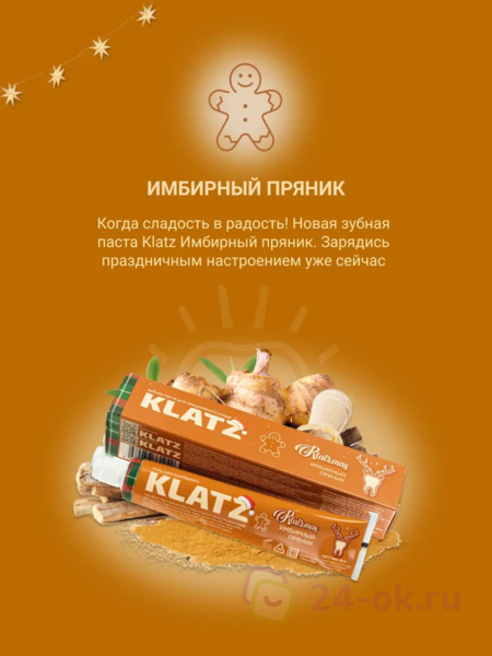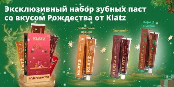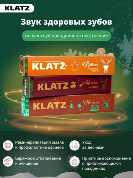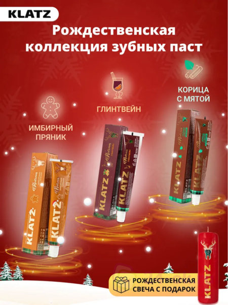 Набор Зубная паста Klatz KLATZMAS Глинтвейн 75мл+Корица с мятой 75мл+Имбирный пряник 75мл+Рождественская свеча