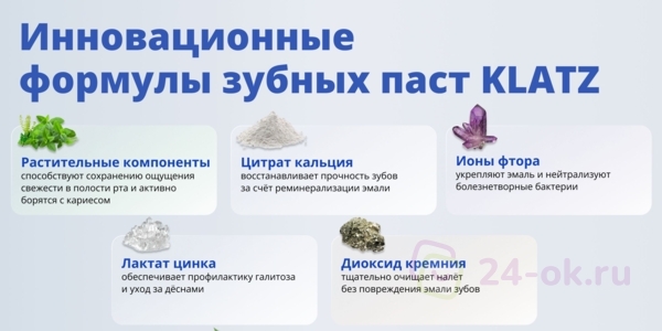 Для полноценной гигиены полости рта и здоровья зубов эксперты Klatz рекомендуют чередовать использование зубных паст с кальцием и с фтором.