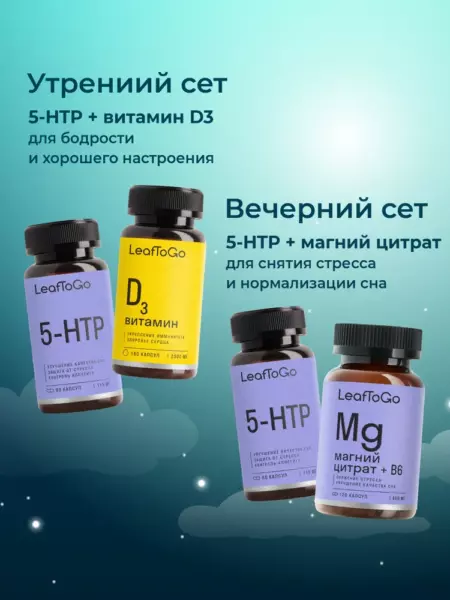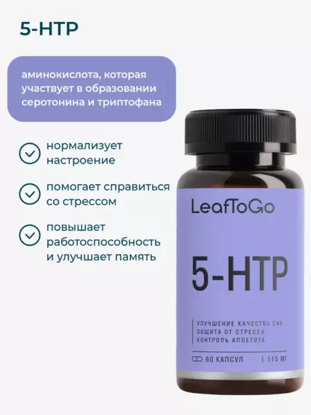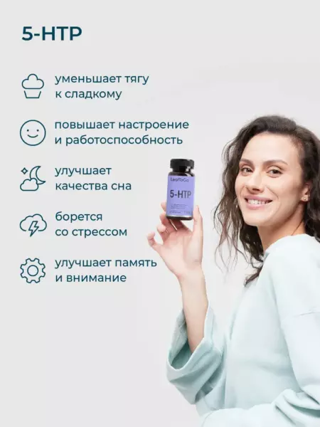 Витамин 5-HTP является прекурсором серотонина - нейромедиатора, который играет важную роль в регуляции настроения, сна и аппетита. Многие люди отмечают положительные результаты после приема 5-HTP, таких как улучшение настроения, снижение тревожности и улучшение сна. Кроме того, 5-HTP может помочь в борьбе с болями головы, снижении аппетита и улучшении функции пищеварения. Конечный результат может зависеть от индивидуальных потребностей и состояния здоровья каждого человека. Перед началом приема 5-HTP следует проконсультироваться с врачом. Рекомендации по применению: взрослым по 1 капсуле в день во время еды. Продолжительность приема: 1 месяц. По рекомендации специалиста продолжительность приема может быть увеличена. Противопоказания: индивидуальная непереносимость компонентов, беременность и кормление грудью. Перед применением рекомендуется проконсультироваться с врачом.