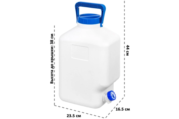 Фляга - бидон "Аквалайн" 23,5х16,5х38 см на 10 литров с краном подходит для хранения, транспортировки и раздачи воды в хозяйственных нуждах. Фляжку можно использовать на даче как емкость для летнего душа или как садовую бочку с водой для полива. Бак станет отличным помощником в огороде. Тара подходит для многократного применения с разными жидкостями. Бидон герметично закрывается завинчивающейся крышкой и имеет кран. Сделайте дачный умывальник или используйте для хозяйственных нужд. Канистра оснащена ручкой, такую бутыль удобно переносить. Бутылка с краном "Аквалайн" поможет организовать хранение и транспортировку жидкостей для самых разных задач!