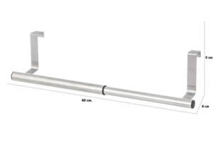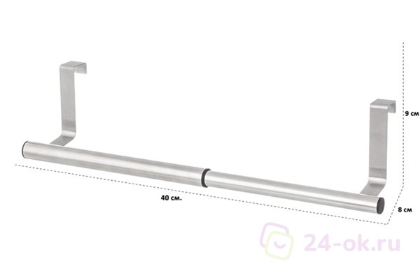 Раздвижной держатель для полотенец выполнен из качественного металла. Позволит держать полотенце всегда под рукой и хорошо впишется в любой интерьер. Раздвигается под необходимый размер, позволяя настроить его под длину дверцы или длину полотенца: от 24 до 40 см. Рассчитан на толщину дверцы не более 2 см.