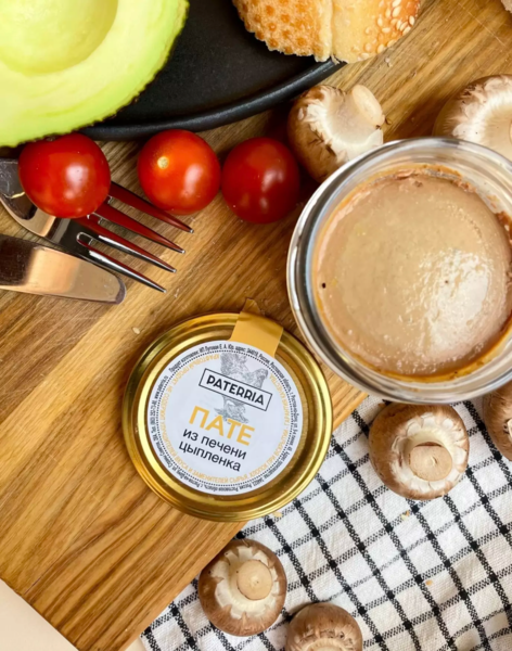 Состав: печень куриная, мясо цыпленка, масло сливочное м.д.ж.82,5% (сливки пастеризованные), яйцо куриное, лук, морковь, масло подсолнечное рафинированное, перец черный, чеснок, соль пищевая.