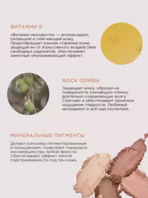 Кремовый консилер для кожи вокруг глаз обеспечивает идеально ровное покрытие, маскируя синячки, пигментные пятна, сосудистую сеточку и другие несовершенства.