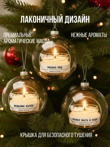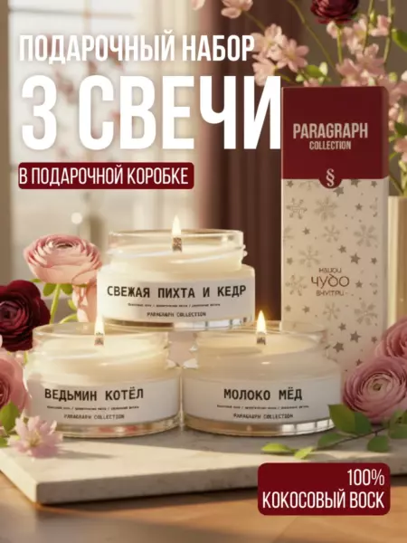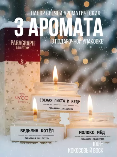 Paragraph Collection Набор свечей 3 в 1 Ведьмин котел, свежая пихта и кедр, молоко мед