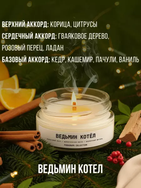 Ведьмин котёл – загадочный и пряный, с мистическими акцентами трав и специй, создающий таинственную атмосферу;