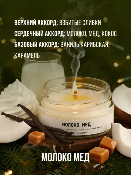 Молоко и мёд – нежный и сладкий, с мягкими сливочными нотками, создаёт атмосферу спокойствия и заботы;