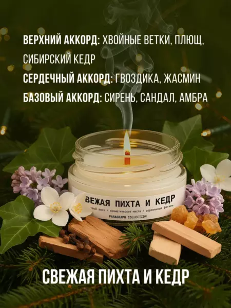 Свежая пихта и кедр – бодрящий лесной аромат, наполняющий пространство чистотой и зимней свежестью;