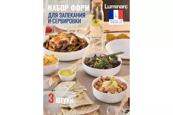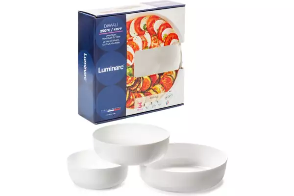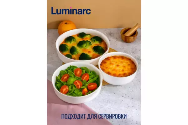 Набор LUMINARC ДИВАЛИ из трех предметов представляет собой практичное решение для запекания блюд. Изготовленный из высококачественного стекла, он обладает прочностью и долговечностью. Белый цвет придаёт набору элегантный вид, подходящий для любого стиля кухни. Круглая форма и размеры 260х260 мм делают его удобным для размещения в духовке или микроволновой печи. Возможность использования в СВЧ и мытья в посудомоечной машине обеспечивает легкость ухода и экономию времени. Несмотря на отсутствие антипригарного покрытия, стеклянная поверхность легко очищается. Набор включает три предмета, что позволяет готовить несколько блюд одновременно, а его вес в 2.538 кг обеспечивает устойчивость и надежность при использовании.