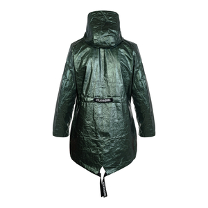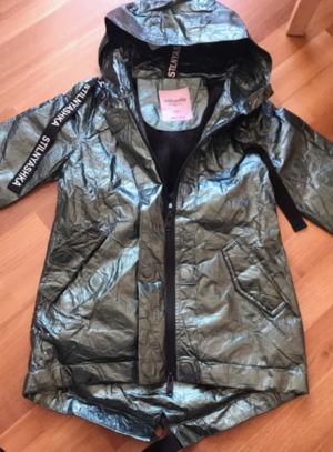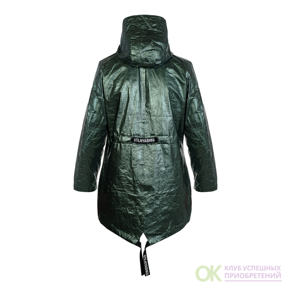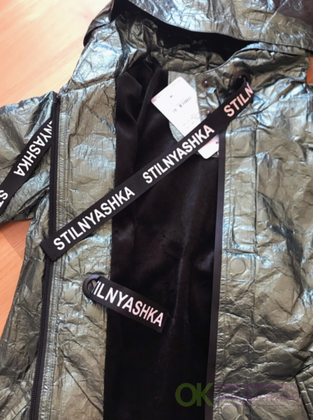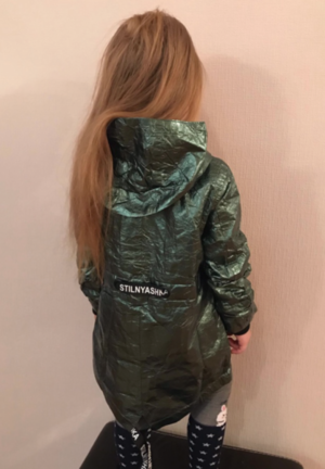 Отличная куртка, размер соответствует. Ткань с эффектом жатой бумаги, модно смотрится. От дождя сохраняет. Удобно что есть качественная молния и клепки на магнита. Стильный плащик. Спасибо