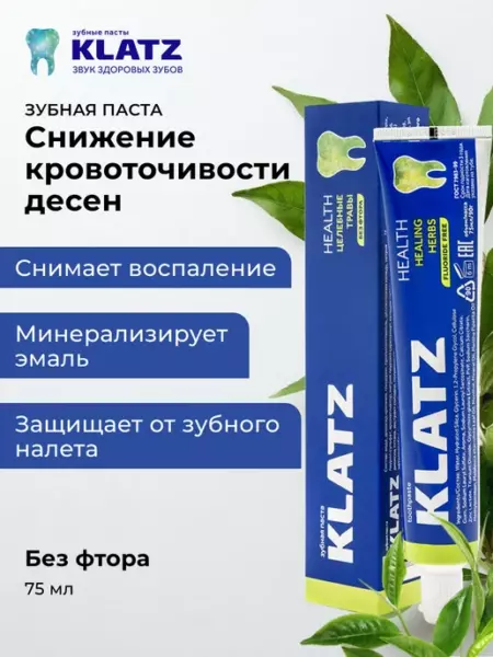 КЛАЦ Зубная паста Klatz HEALTH Целебные травы без фтора 75 мл