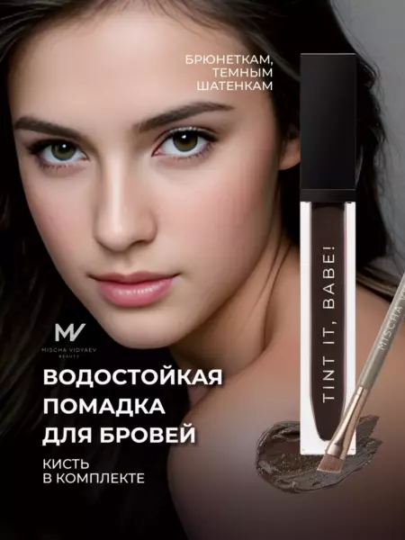 Стойкий тинт для бровей TINT IT BABE + кисть для бровей в комплекте Dark MISCHA VIDYAEV
