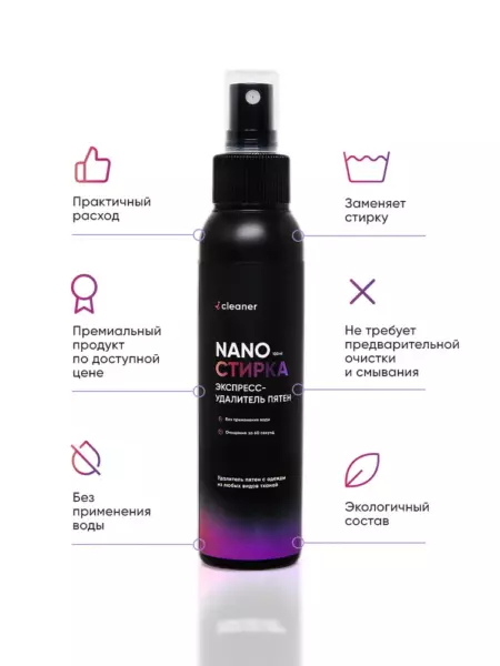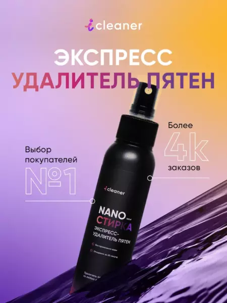 Экспресс-удалитель пятен iCleaner "Нано-Стирка" 100мл для всех видов тканей.