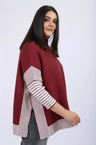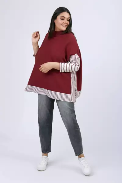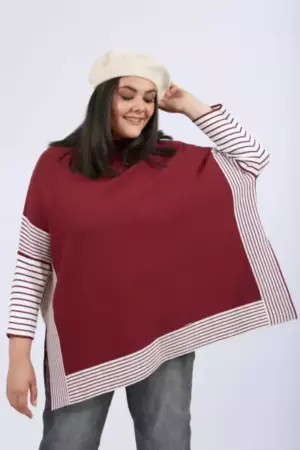 теплая вещь и не избитая. ворот прямо под горло. я-крупная женщина 62 р-ра, но на удивление джемпер не увеличивает мои объемы.