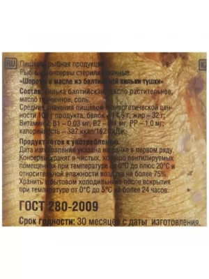 СоставКилька балтийская, масло растительное, масло горчичное, соль