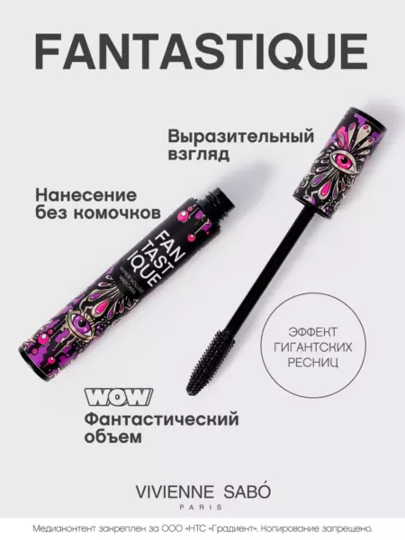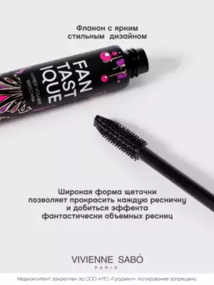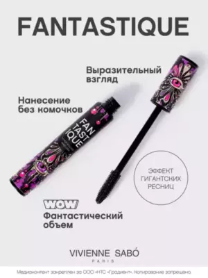 Тушь от Vivienne Sabo Fantastique делает ресницы суперобъемными и густыми благодаря мягкой текстуре и широкой щеточке. Выделяйте черной тушью взгляд снова и снова, обволакивая волоски и увеличивая объем с каждым новым слоем. Особая формула туши с воском и уникальная форма щеточки позволяют добиться эффекта гигантских ресниц в макияже глаз. Тушь отлично подходит для удлинения и подкручивания, что придаёт взгляду невероятную выразительность. Декоративная косметика Vivienne Sabo не тестируется на животных.