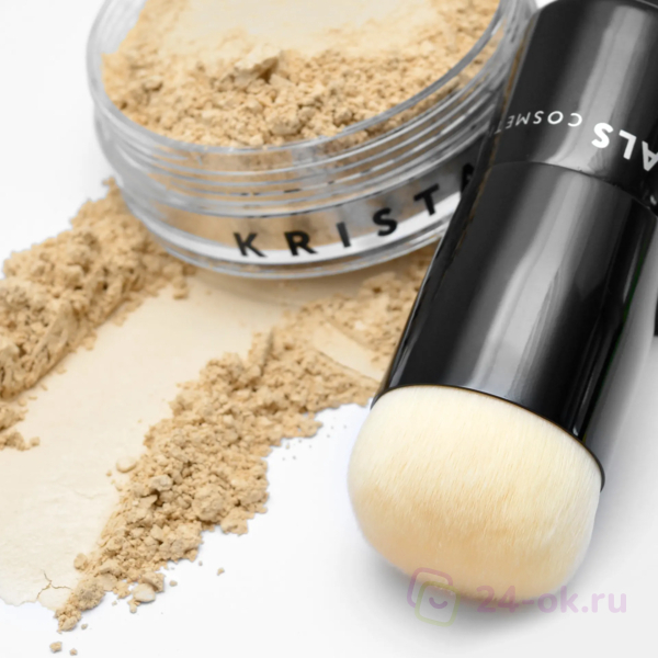 Рассыпчатые текстуры выпускаются в упаковках с ограничителем. Поверните сифтер и высыпьте немного продукта в крышку, опустите кисть вертикально ворсом вниз и круговыми движениями наберите продукт на кисть. Легкими постукивающими движениями удалите излишки с ворса и приступайте к нанесению.