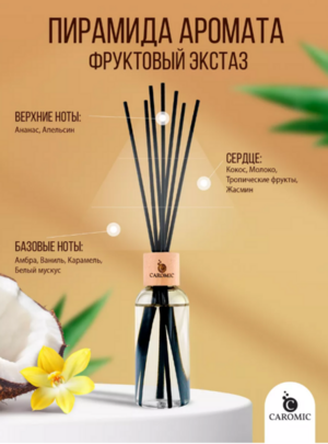 Вы когда-нибудь получали экстаз от аромата ? Если нет, тогда мы готовы доставить вам самое настоящее удовольствие с помощью аромата «Фруктовый экстаз». Кокосовая вода с нежным сливочным оттенком, спелый ананас и ноты ванили наполняют дом в меру сладким, но свежим и ярким пленительным ароматом. Он интригует своими красками и чарует своим шлейфом, окутывая вас в свои нежные объятия.