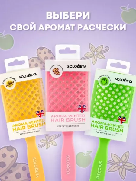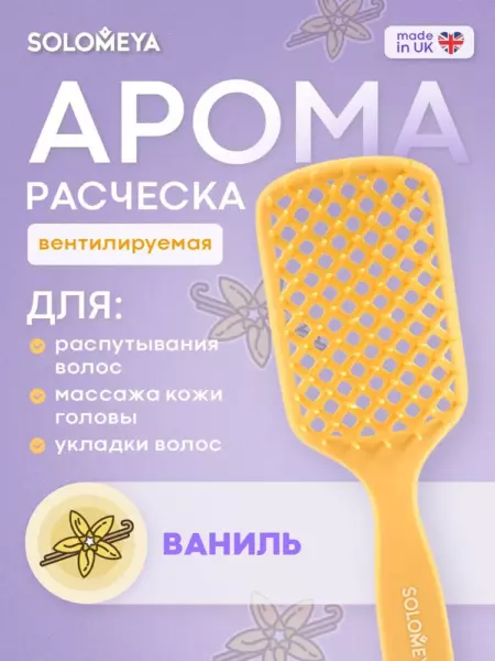 Solomeya Арома-расческа вентилируемая, Ваниль / Aroma-vented hair brush, Vanilla, 1 шт