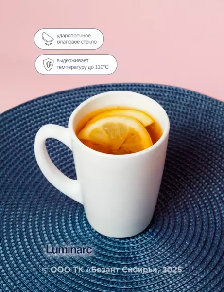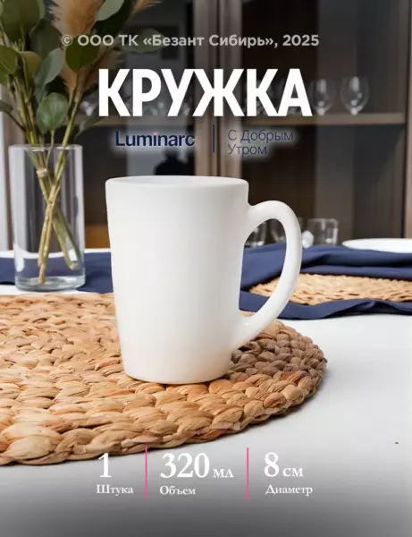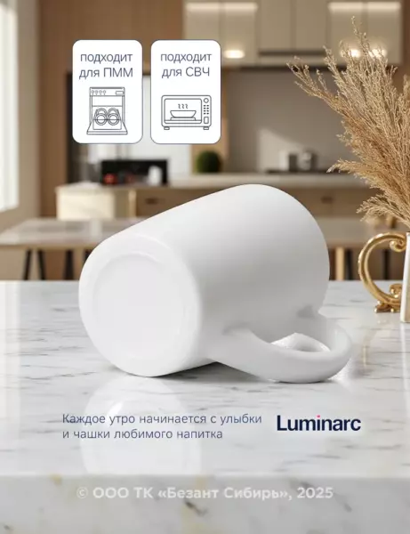 Изготовлена в ОАЭ из прочного опалового стекла, она сочетает элегантный минимализм и надёжную функциональность. Чистый белый цвет подчёркивает естественность напитков, а удобные пропорции обеспечивают комфортный хват и легко помещаются даже в небольшом пространстве — на подоконнике, офисном столе или кухонной полке.