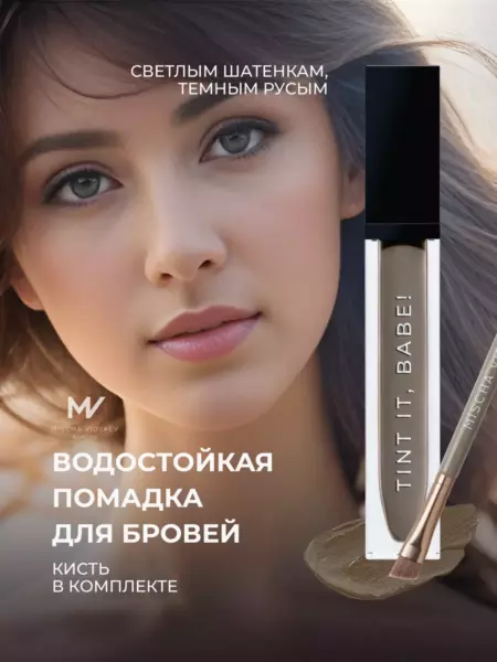 Стойкий тинт для бровей TINT IT BABE + кисть для бровей в комплекте Medium MISCHA VIDYAEV