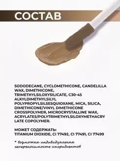 Силика, канделилльский воск, диметикон, диметикон кроссполимер, циклометикон, мика, изододекан, триметилсилоксиликат.