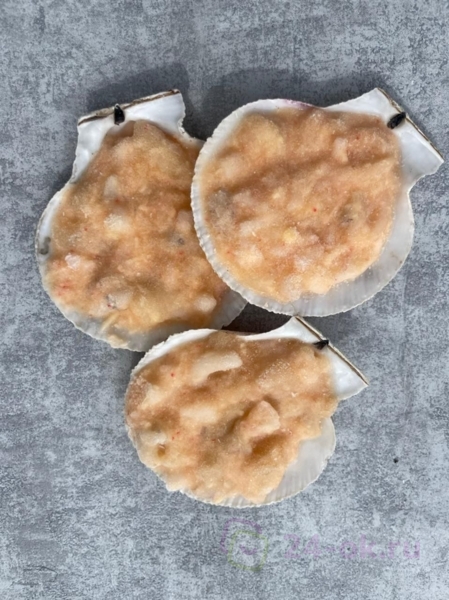 Не размораживая поставить в разогретую на 200 градусов духовку на 10-15 минут. Вытащить из духовки, выложить на блюдо в раковинах, остудить 5 минут и подавать к столу.