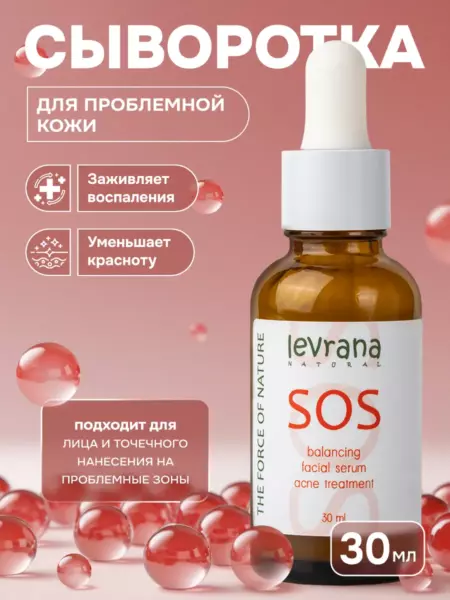 Сыворотка для лица SOS противовоспалительная, для проблемной кожи, точечное действие /30мл /ТМ Levrana