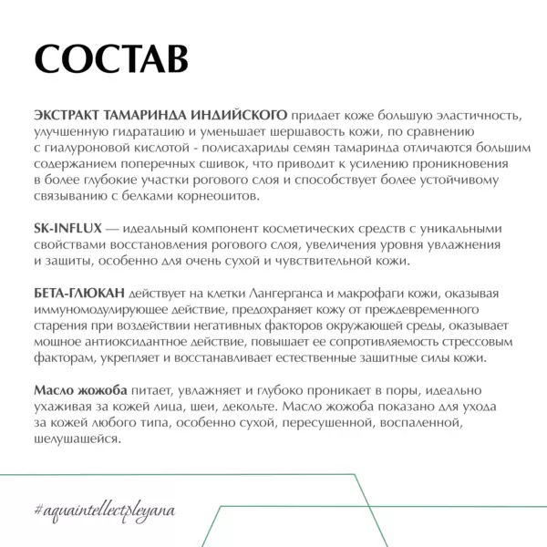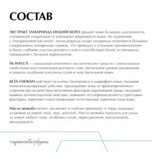 Два действия - одна маска! Роскошное средство (2 в 1) - маска и крем - для активного омоложения, увлажнения и восстановления клеток возрастной кожи любого типа и борьбы с преждевременным старением. Тщательно подобранная комбинация активных пептидов и ингредиентов нового поколения в составе маски обеспечивает эффективное восстановление коллагена до уровня, свойственного молодой и здоровой коже, многоуровневое «интеллектуальное» увлажнение, снятие проявления усталости кожи, проникновение компонентов без нарушения структуры кожи. Идеальное средство для использования в качестве интенсивного увлажняющего компонента после агрессивных программ, процедур химического пилинга, микродермабразии, шлифовки, фото- и лазерного омоложения, мезотерапии. Активные ингредиенты: Trylagen, Sk-influx, Betaglukane, Oenothera biennis. Trylagen (Испания) (гликопротеин штамма бактерии Pseudoalteromonas Antarctica NF3, гидролизованный пшеничный белок, гидролизованный соевый белок, Трипептид-10 цитруллин, Трипептид-1). Trylagen - активный смесевой ингредиент, комплексно воздействующий на коллаген. Существует три различные стадии в жизни коллагена, в течение которых важно способствовать поддержанию его нормальных функциональных возможностей, обеспечивающих молодость и здоровье кожи: а) синтез; б) формирование/ организация в) еградация. Trylagen представляет собой комбинацию активных пептидов и протеинов, которые способствуют решению проблем на каждой из этих трех стадий и обеспечивают комплексное воздействие, в результате чего происходит всестороннее улучшение качества коллагена. Trylagen эффективно восстанавливает уровень коллагена как в молодой, так и в зрелой коже.