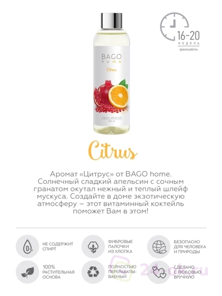 Цитрус BAGO home наполнитель для диффузора 200 мл