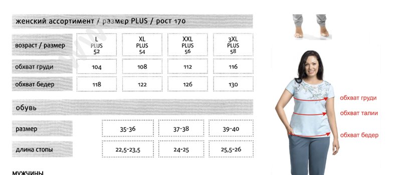 ЖЕНЩИНАМ — модную и практичную повседневную одежду, одежду для активного отдыха, комфортные пижамы, удобное и стильное нижнее белье;