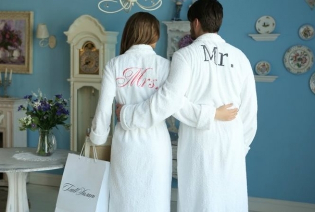 В сети огромное количество фоток, в одном только инстаграмме 35000 публикаций на тему именных халатов, можете там глянуть примеры