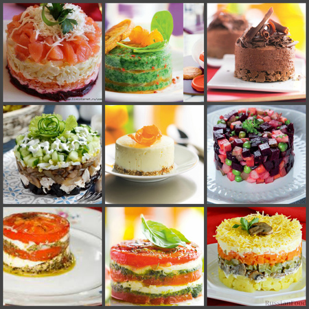 В качестве вкусных прослоек вы можете использовать не только твердые продукты, но и полужидкие различные овощные и фруктовые пюре, закрепленные желатином.
