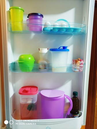У меня холодильник забит продуктами, все на месте, компактно.