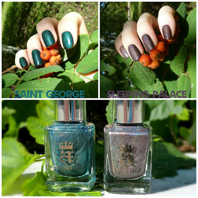 [quote]Необычные лаки A England уже успели завоевать сердца многих девушек, вот и я не осталась равнодушной:) Речь пойдет сразу о двух оттенках Saint George из коллекции The Legend и Sleeping Palace из коллекции Burne-Jones Dream. По качеству лаки абсолютно одинаково хороши, поэтому характеристики буду писать для обоих, различия только в цвете.