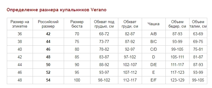 - В купальниках европейские размеры! Для определения российского размера необходимо прибавить 6!