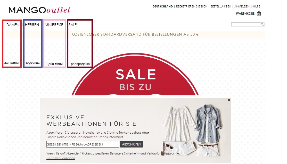Сайт MANGO outlet http://www.mangooutlet.com/DE/outlet