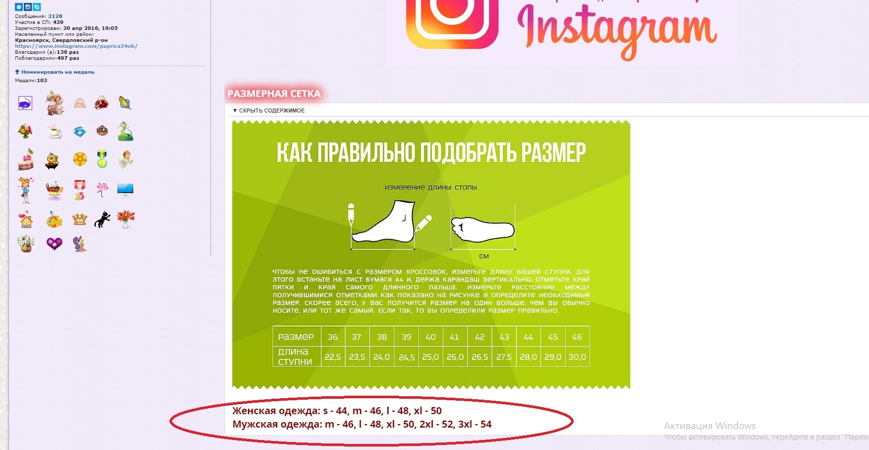 В самом начале темы закупки под надписью "Размерная сетка" нажимаем "показать содержимое" и вот, что имеем: