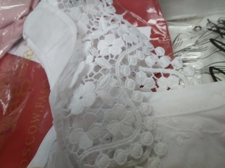 Обалденная маечка из фактурного хлопка. Летящие кружевные крылышки. На спинке бант. Подклад.