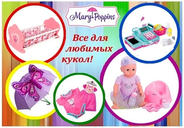 Кроме кукол под маркой Мэри Поппинс выпускаются все необходимые атрибуты ухода за куклами: одежда, посуда, кроватки, коляски. Вся продукция сделана из безопасных материалов и в соответствии с международными стандартами качества.