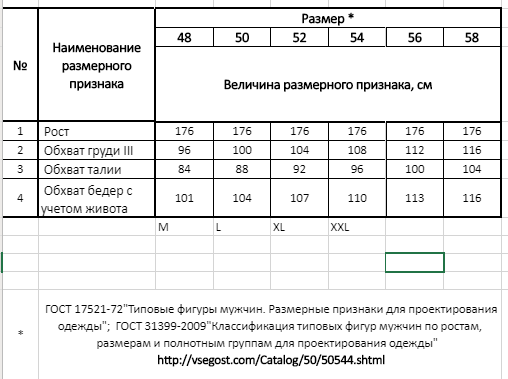 менеджер отправила размерную сетку