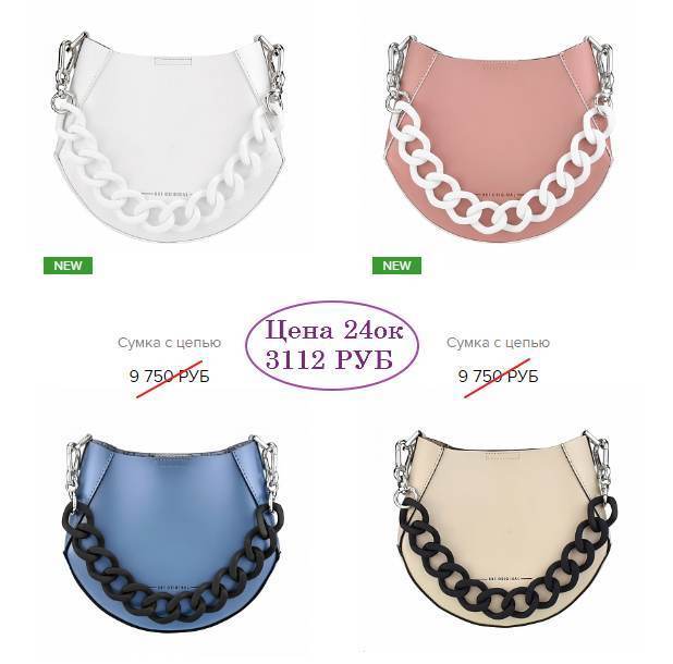 *Помимо цепочки в комплекте к сумочкам идет стандартный ремень.