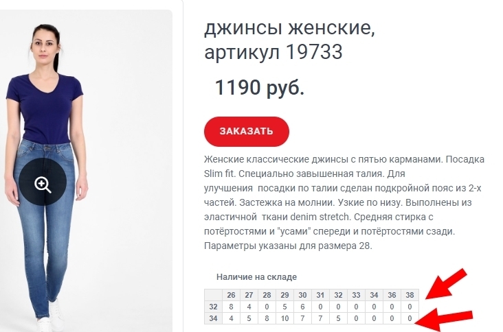 Здравствуйте. Вот в этой модели на сайте есть 38 размер, а в каталоге его нет. Добавьте пожалуйста www.f5jeans.ru/catalog/zhenskaya-kollekciya/dzhins...