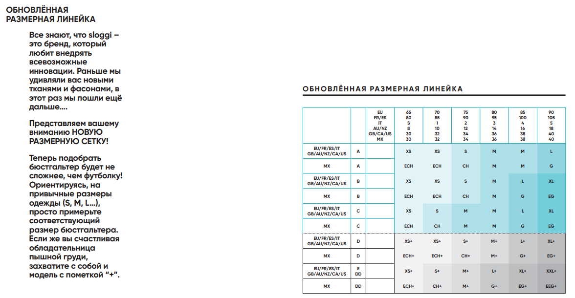 • наличие размерных рядов;