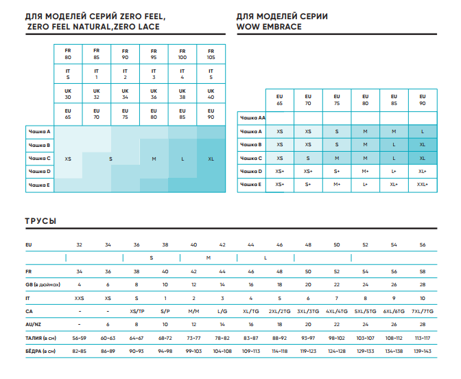 Размерная сетка Tr
