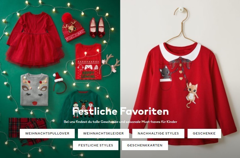 В детском каталоге компании - полный ассортимент нарядов для детей от рождения до подросткового возраста: топы, футболки, джемеры, кардиганы, брюки, леггинсы, шорты, платья, юбки, джинсовая линия, нижнее белье, одежда для сна, обувь, аксессуары. Представлены вещи как базового ассортимента, так и модных коллекций сезона.