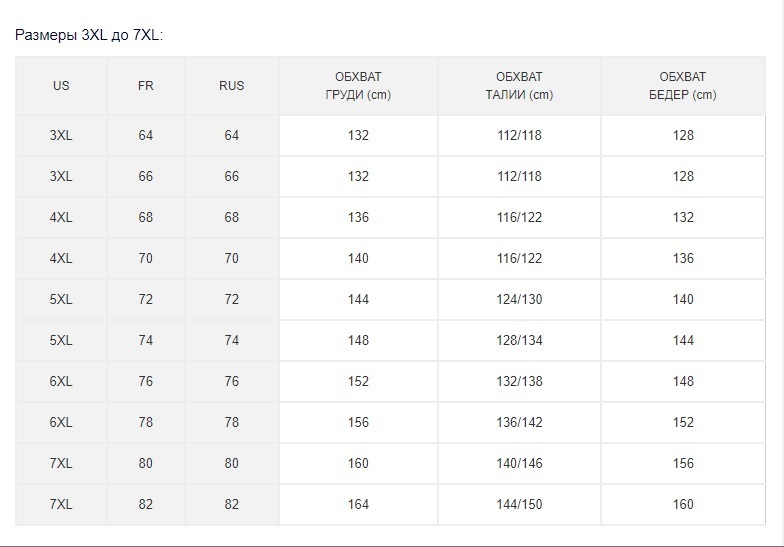 shrike, вот с сайта поставщика сетка для больших размеров. Я не подскажу, девочки вроде на 60-62 берут 3XL/