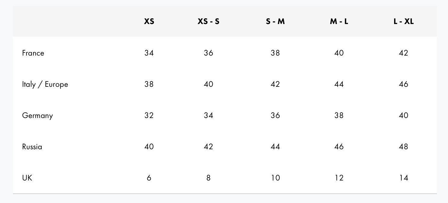 Но по опыту размер S наш 42/44, М-44/46 и тд.