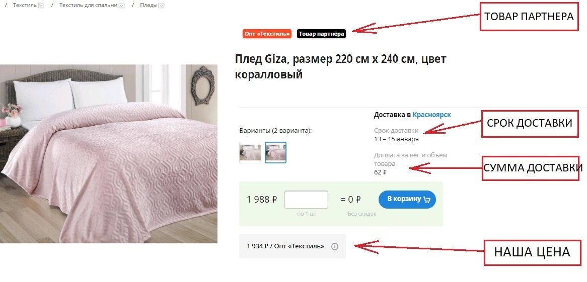 если лот ТОВАР ПАРТНЕРА, справа можно увидеть ориентировочную дату прихода в город