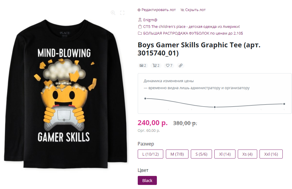 к заказу доступны единственный размер M